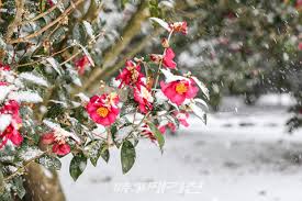 겨울의 추위 속에서도 굴하지 않고 붉게 피어났다가